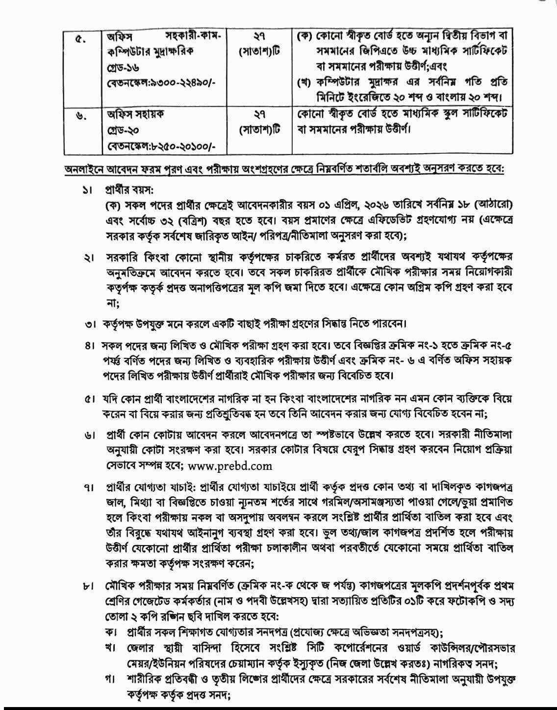 যোগ্যতা: এইচএসসি (HSC) পাস। কম্পিউটার টাইপিংয়ে দক্ষতা।