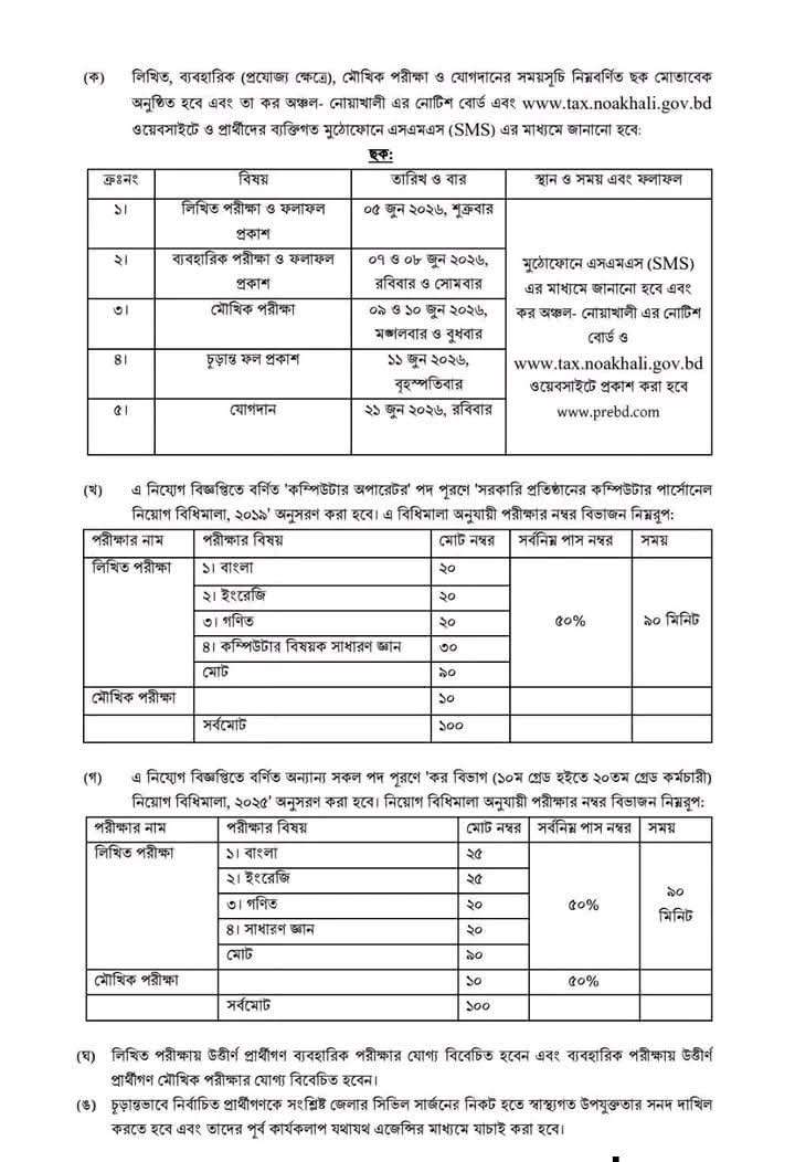কর কমিশনারের কার্যালয় কর অঞ্চল নোয়াখালী নিয়োগ বিজ্ঞপ্তি ২০২৬